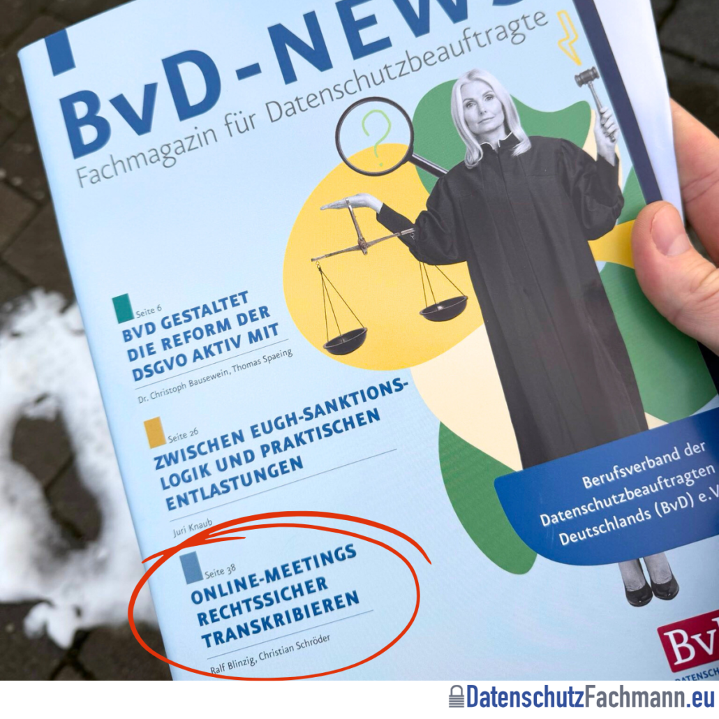 Ralf Blinzig und ich sind mit einem Fachartikel in der aktuellen Ausgabe der BvD-News des Berufsverband der Datenschutzbeauftragten Deutschlands (BvD) e.V. vertreten.